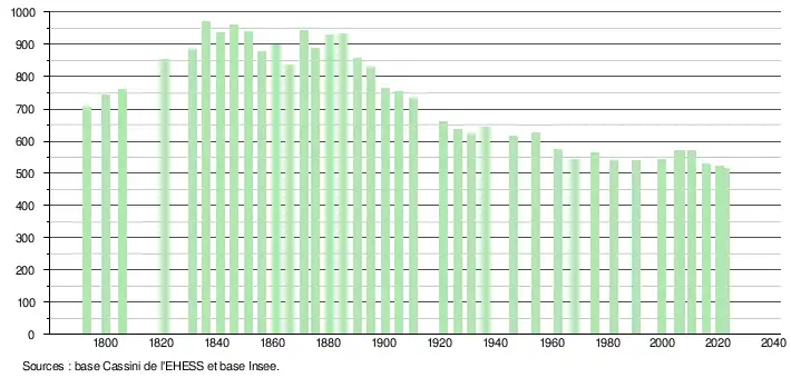 - ↑ Fiches Insee - Populations de référence de la commune pour les années 2006, 2007, 2008, 2009, 2010, 2011, 2012, 2013, 2014, 2015, 2016, 2017, 2018, 2019, 2020, 2021 et 2022.