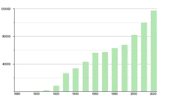 | 1950 | 43 162 | ▲ +28,1 % | |