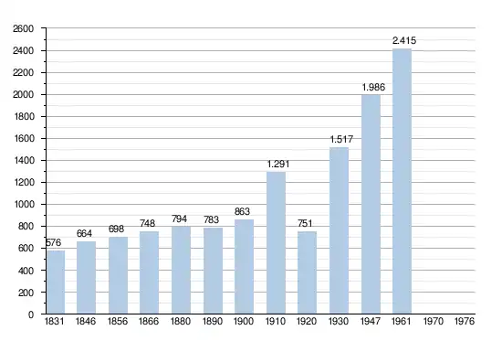- Sources : INS, Rem. : 1831 jusqu'en 1970 = recensements, 1976 = nombre d'habitants au 31 décembre[2].