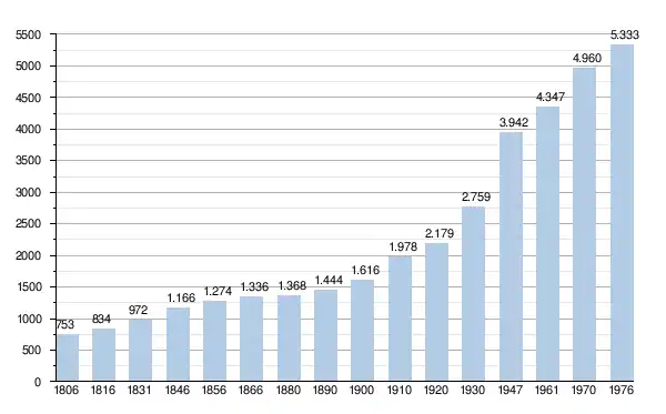 - Sources : INS, Rem. : 1831 jusqu'en 1970 = recensements, 1976 = nombre d'habitants au 31 décembre[2].