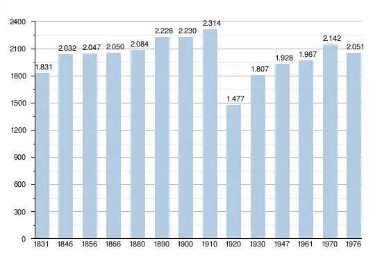 - Sources : INS, Rem. : 1831 jusqu'en 1970 = recensements, 1976 = nombre d'habitants au 31 décembre[2].