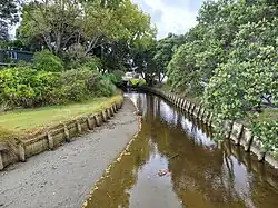 De sa source jusqu’à la mer, le cours d’eau passe successivement : à travers le terrain de ‘Kapiti Golf Course’, ‘Kaitawa Reserve’, sous la ligne de chemin de fer de la ligne principale de l’île du nord (en) et l’ancienne route State Highway 1, le centre commercial de la ligne de côte, une partie de l’aéroport de Paraparaumu, et finalement le Weka Park (en).