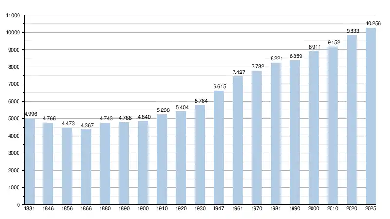 - Sources : INS, Rem. : 1831 jusqu'en 1970 = recensements, 1976 = nombre d'habitants au 31 décembre[4].