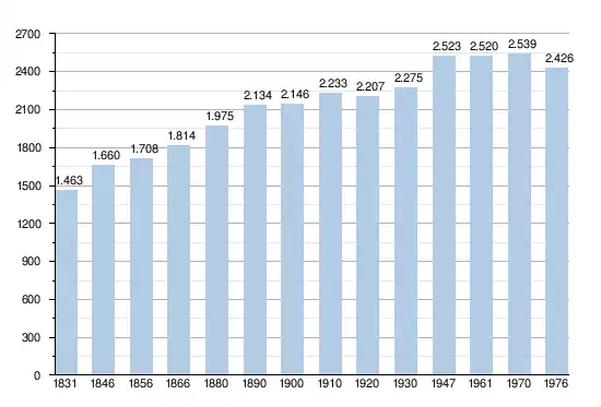 - Sources : INS, Rem. : 1831 jusqu'en 1970 = recensements, 1976 = nombre d'habitants au 31 décembre[2].