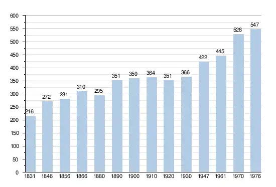 - Sources : INS, Rem. : 1831 jusqu'en 1970 = recensements, 1976 = nombre d'habitants au 31 décembre.