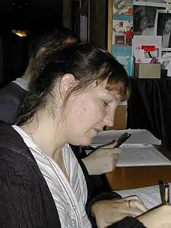 Florence Devouard lors de l'assemblée générale constitutive de Wikimedia France, le 23 octobre 2004.