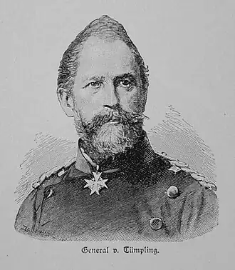 Lors de la guerre germano-danoise de 1864, des parties de sa division sont utilisées au combat, par exemple lors de l'assaut de Düppel et à l'occupation de Fehmarn, mais lui-même n'est pas impliqué, mais est resté à Kiel pendant les combats. Lors de la guerre austro-prussienne de 1866, son premier déploiement a lieu lors de la bataille de Gitschin. Il est censé conquérir la place dans le cadre d'un mouvement de tenaille[2]. Lorsqu'il dirige personnellement une attaque d'infanterie, il a été blessé et a dû passer le reste de la campagne à l'hôpital. Comme l'attaque de Gitschin est couronnée de succès, cependant, il reçoit l'ordre Pour le Mérite. Après la guerre, il est pendant quelques semaines gouverneur général du royaume de Saxe. À partir du 30 octobre 1866 Tümpling dirige le 6e corps d'armée.