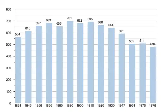 - Sources : INS, Rem. : 1831 jusqu'en 1970 = recensements, 1976 = nombre d'habitants au 31 décembre.