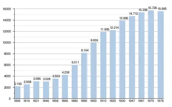 - Sources : INS, Rem. : 1831 jusqu'en 1970 = recensements, 1976 = nombre d'habitants au 31 décembre[3].