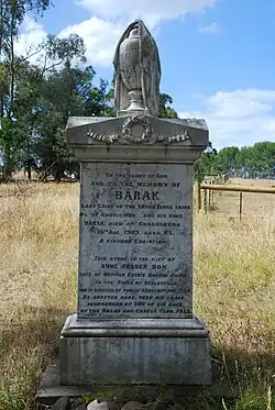 Barak est mort à Coranderrk en 1903 et il est enterré dans le cimetière du village[2].