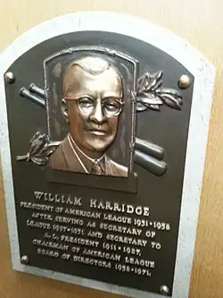 Will Harridge fut élu à titre posthume au Temple de la renommée du baseball en 1972.