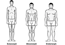 Dans les années 1940, Sheldon a décrit trois types corporels, ou somatotypes. À partir de photos de nus d'étudiants de l'Ivy league[3], il a développé une typologie qui s'appuyait sur les données de l’embryologie qui distingue trois couches de tissu : l’endoderme, le mésoderme, et l’ectoderme.
