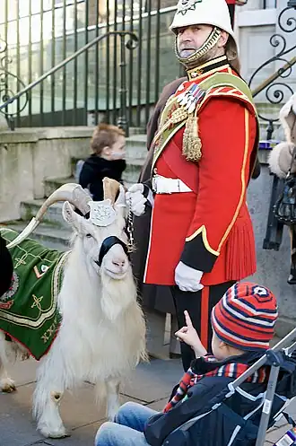 - ↑ (en) « Demoted British army goat redeemed after royal blunder », sur The Australian, (consulté le )