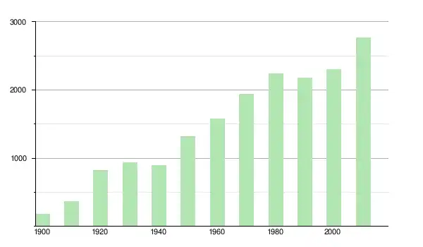 | 1950 | 1 323 | ▲ +48,65 % | |