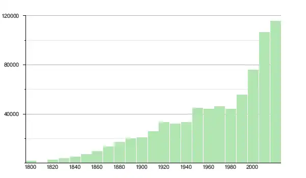 | 1950 | 45 043 | ▲ +34,83 % | |