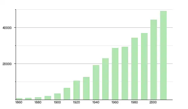 | 1930 | 12 613 | ▲ +18,86 % | |
