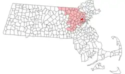 Localisation sur la carte de Massachusetts