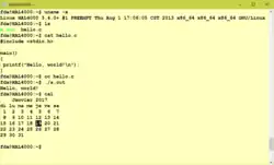 Support de curses : les programmes utilisant curses (utilisation plein écran du terminal en mode texte) se compilent sans erreur et leur binaire fonctionne soit dans la fenêtre bash de Windows 10, soit dans un xterm[46] que l'on peut ouvrir sur un serveur X lancé sous Windows (ou un autre serveur X d'une machine distante). Un répertoire quelconque de Windows depuis la session Linux s'accède par un lien symbolique : ln -s /mnt/c/Users/Votrenom/Desktop/dossier dossier.
