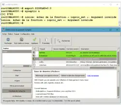 Support de X : WSL n'exécute pas encore nativement d'applications graphiques faute de serveur X intégré, mais l'utilisateur peut en installer un sur son poste (ou n'importe où ailleurs dans son réseau) tels les serveurs X sous Windows Xming, GWSL[42] ou VcXsrv gratuits[43]. La communication entre WSL (ou tout autre client X du réseau) et ce serveur s'effectue alors normalement par les ports 6000 et 6001. Cela permet entre autres d'installer le gestionnaire de paquets Synaptic[44], et de là tout le cortège Linux souhaité, si l'on souhaite éviter de saisir des sudo apt install à répétition. Pour le texte ou le développement dans une session X, il faut penser à activer ensuite le clavier français ou autre par lxkeymap dans la session bash.