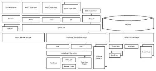 Architecture de Windows 95 (cliquer pour agrandir).