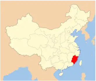 Carte de la Chine montrant la province du Fujian (rouge)