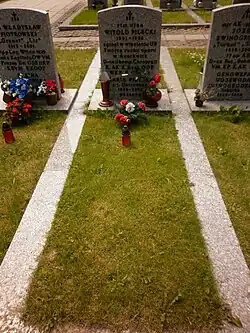 Le lieu d'inhumation de Pilecki n'a jamais été retrouvé[2], mais il est supposé que c'est dans le cimetière de Powązki à Varsovie[3]. Après la chute du communisme en Pologne, une pierre tombale symbolique est érigée en sa mémoire au cimetière militaire de Powązki. Les informations sur ses exploits et son destin sont cachées jusqu'en 1989 par le régime communiste en Pologne[11].