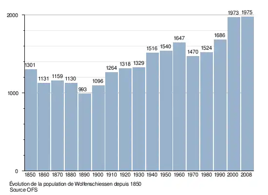 Le graphique suivant résume l'évolution de la population de Wolfenschiessen entre 1850 et 2008[3] :