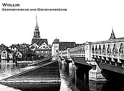 La ville fut presque rasée au cours des dernières semaines de la guerre, en . D'abord occupée par l’Armée rouge, Wollin et le reste de la Poméranie ultérieure fut, conformément aux décisions de la conférence de Potsdam, placée sous administration polonaise. Elle fut évacuée dans le cadre du rattachement à la république populaire de Pologne des conquêtes de l'Union soviétique situés à l'est de la ligne Curzon : en vertu des décrets Bierut, sous la pression de la police polonaise, la population allemande fut forcée de partir entre 1945 et 1947 en abandonnant ses biens sur place.