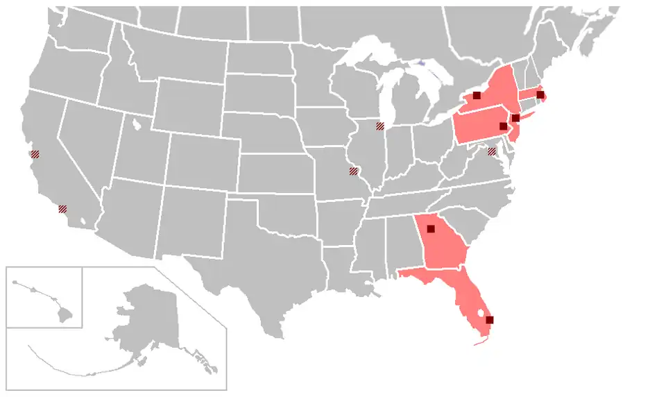 Carte des franchises actuelles de la WPS