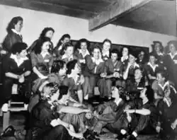 Frances Green, Margaret Kirchner, Ann Waldner et Blanche Osborn quittant leur appareil « Pistol Packin' Mama » au centre de formation AAF, en Ohio. | |
