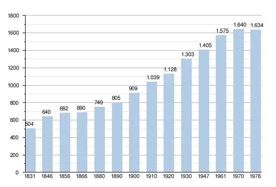 - Sources : INS, Rem. : 1831 jusqu'en 1970 = recensements, 1976 = nombre d'habitants au 31 décembre.