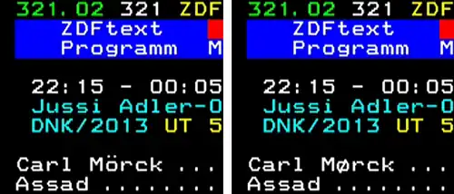 - SWR Fernsehen (télétexte de niveau 2.5 complètement rétro-compatible, avec des texte et graphiques de plus haute qualité sur quasiment chaque page).