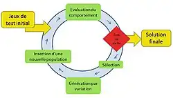 L’algorithme commence par une population initiale de paramètres (par exemple les données d’essais en cas de test évolutionnaire). Les membres de la population sont ensuite évalués en fonction de leur comportement. Dans le cas du WCET, la valeur de ces paramètres est remise en cause en fonction de la durée d’exécution du programme. Après cette évaluation, si les conditions sont remplies l’algorithme aura défini des paramètres permettant une estimation du WCET plus précise[19]. L'algorithme génétique, qui est un type d'algorithme évolutionniste, est le plus souvent utilisé dans le cadre des méthodes dynamiques[20]. Frank Mueller et Joachim Wegener ont développé une nouvelle approche pour tester le comportement temporel des systèmes temps réels. Grâce à leurs tests évolutionnaires, les jeux de données optimisés sont obtenus automatiquement et permettent de vérifier si les contraintes temporelles spécifiées pour le système sont dépassées[21]. Amine Marref a également développé un programme génétique pour proposer une alternative aux méthodes d'obtention de jeux de paramètres pour l'analyse du WCET. Les paramètres de test sont capturés automatiquement par le programme génétique à la suite de l'exécution de bout en bout du programme sous analyse[22]. Un autre travail proposant un framework de génération de jeux de tests généralisés basé sur une technique d'optimisation a également été publié[23]. Ces méthodes de génération automatique sont dans certaines publications considérées comme méthodes semi-dynamiques ou méthodes hybrides[24]. Le développement de ces techniques principalement basées sur des algorithmes génétiques entraine un regain d’intérêt des méthodes autres que statiques[25]. Cet intérêt est d’autant plus fort du fait de l’utilisation principale des méthodes dynamiques par les industriels[26].