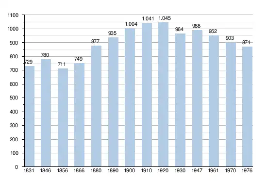 - Sources : INS, Rem. : 1831 jusqu'en 1970 = recensements, 1976 = nombre d'habitants au 31 décembre[2].