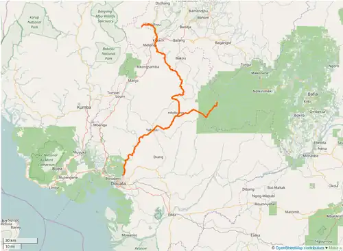 Au confluent de ces deux rivières, le cours d'eau prend le nom de Wouri.