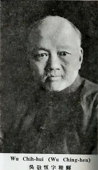 Wu Zhihui (chinois : 吳稚暉 ; pinyin : ; Wade : Wu Chih-hui), né le et décédé le ), également connu sous le nom de Woo Tsin-hang ou Wu Shi-Fee, est un linguiste et philosophe anarchiste chinois qui était le président de la Commission sur l'unification de la prononciation de 1912-1913 qui a créé zhuyin (basé sur le travail de Zhang Binglin) et a normalisé la prononciation de mandarin standard.