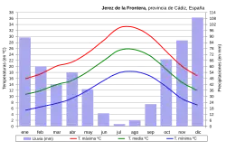 La région de Jerez de la Frontera a un climat typique de la Méditerranée du sud. Avec son soleil intense, qui brille 300 jours par an, son air marin, porteur d'un peu de fraicheur la nuit et de rosée matinale, ses pluies rares concentrées d'octobre à décembre puis de février à mai, les hivers sont généralement humides mais assez doux, les étés, chaud à torride.