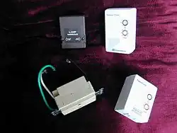 Les modules de la gamme X10 peuvent être couplés avec des télécommandes radio qui donnent des ordres à des modules pilotés par courants porteurs par l'intermédiaire d'un convertisseur fréquence radio (433 MHz) en fréquence porteuse.