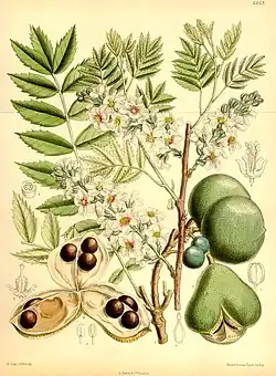 Inflorescences de Xanthoceros sorbifolium.- Graines.