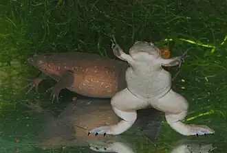 Xenopus tropicalis est une espèce d'amphibiens de la famille des Pipidae[1]. Ces crapauds griffus à peau lisse vivent dans des étangs et des mares en Afrique tropicale. Ils peuvent mesurer entre 4 et 6 cm.