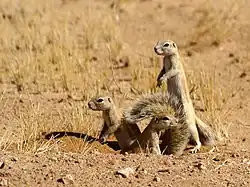 L'écureuil de terre du Cap (Xerus inauris) est un rongeur exclusivement diurne vivant dans des espaces ouverts de régions arides[4].
