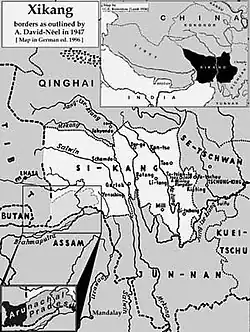 Dans les faits, le contrôle chinois ne portait que sur le Kham oriental, les Tibétains contrôlant le Kham occidental (région de Qamdo), le fleuve Yangzi constituant alors la frontière définie lors de la convention de Simla, entre Chine et Tibet[13],[14]. Pendant cette période, la région contrôlée par Liu Wenhui devint un centre important de production d'opium[15].