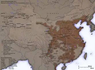 Les Xiongnu sont alors reconnus comme étant le plus puissant des peuples nomades qui bordent l'empire des Han[30] et, pour un temps, c'est eux qui tiennent le haut du pavé face aux Chinois. Selon le Livre des Han, cité plus tard dans le Youyang zazu (en) (Variétés de Youyang) de Duan Chengshi :