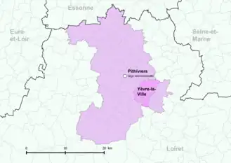 - ↑ « Orthodromie entre Yèvre-la-Ville et Boigneville », sur fr.distance.to (consulté le ).