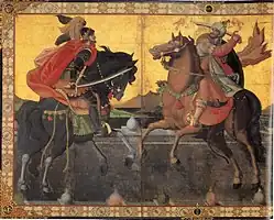 Paravent avec cavaliers (vers 1600), détail.
