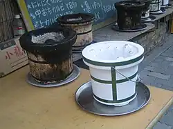 - ↑ Kazuhiro Soga (曽我 和弘, Soga Kazuhiro), Kansai Food Business Society, http://shokubi.hp.infoseek.co.jp/soga.htm 炭火焼きブームは何故起こったのか], "この炭火焼ブームは焼肉ブームに端を発している。規制緩和の問題により、肉が輸入自由化となり、米・豪から安い輸入肉が入るようになった。このことにより激安焼肉店が生まれてくるわけだが、店としては「肉が旨い」というフレーズを使いたい。かといってその代名詞である「和牛オンリー」とは言いづらい、そのため「旨い」という印象を与える「炭火」という言葉を使ってそのイメージアップをはかっているのである。".