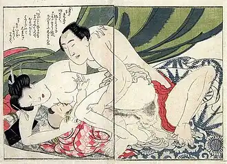 Yanagawa Shigenobu (柳川 重信, 1787-1833) est un peintre japonais du style ukiyo-e actif à Edo durant l'ère Bunka et au-delà. Il réside à Osaka entre 1822 et 1825. À Edo, il demeure dans le district de Honjo Yanagawa-chō. Il est d'abord l'élève, puis le gendre du maître imprimeur Katsushika Hokusai qui l'adopte finalement pour fils. Il dessine des livres illustrés, des affiches et des surimono. À Osaka, il travaille avec Tani Seikō, un talentueux préparateur et imprimeur.