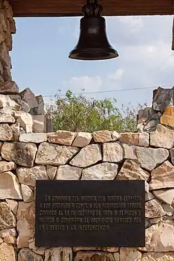 - ↑ La cloche à La Demajagua (es) (sur Manzanillo) qui a servi à l'appel du 10 octobre 1868, dit Cri de Yara (es), lancé par Carlos Manuel de Céspedes pour la guerre d'indépendance contre l'Espagne dite guerre des Dix Ans. Voir détail du panneau, qui dit :