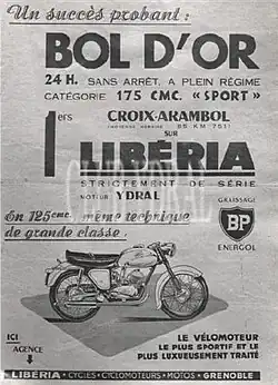 En 1956, Daniel Arambol et son équipier Pierre Croix sont victorieux en 175 Sport, sur une Libéria équipée d'un moteur Ydral. Les 2 059,026 km ont été parcourus à la moyenne de 85,571 km/h ce qui une très elle performance pour une moto pratiquement de série.