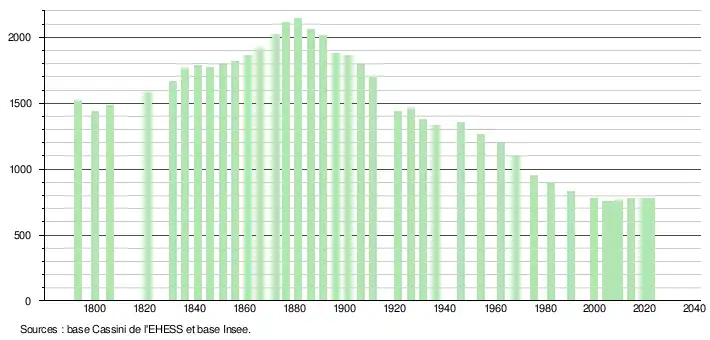 En 2022, la commune comptait 778 habitants[Note 1], en évolution de +0,39 % par rapport à 2016 (Allier : −1,38 %, France hors Mayotte : +2,11 %).